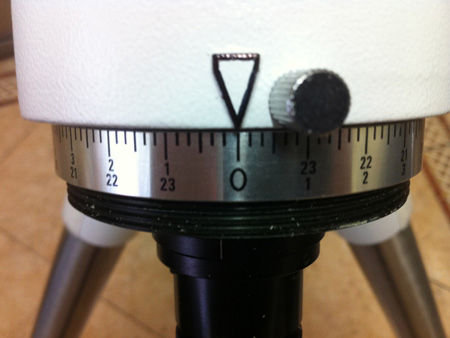 Giramos el anillo graduado para volver a hacer coincidir las cero horas con la marca de la montura. Ahora es el momento de hacer una marca en la montura, que relacione esta posición para futuras puestas en estación.